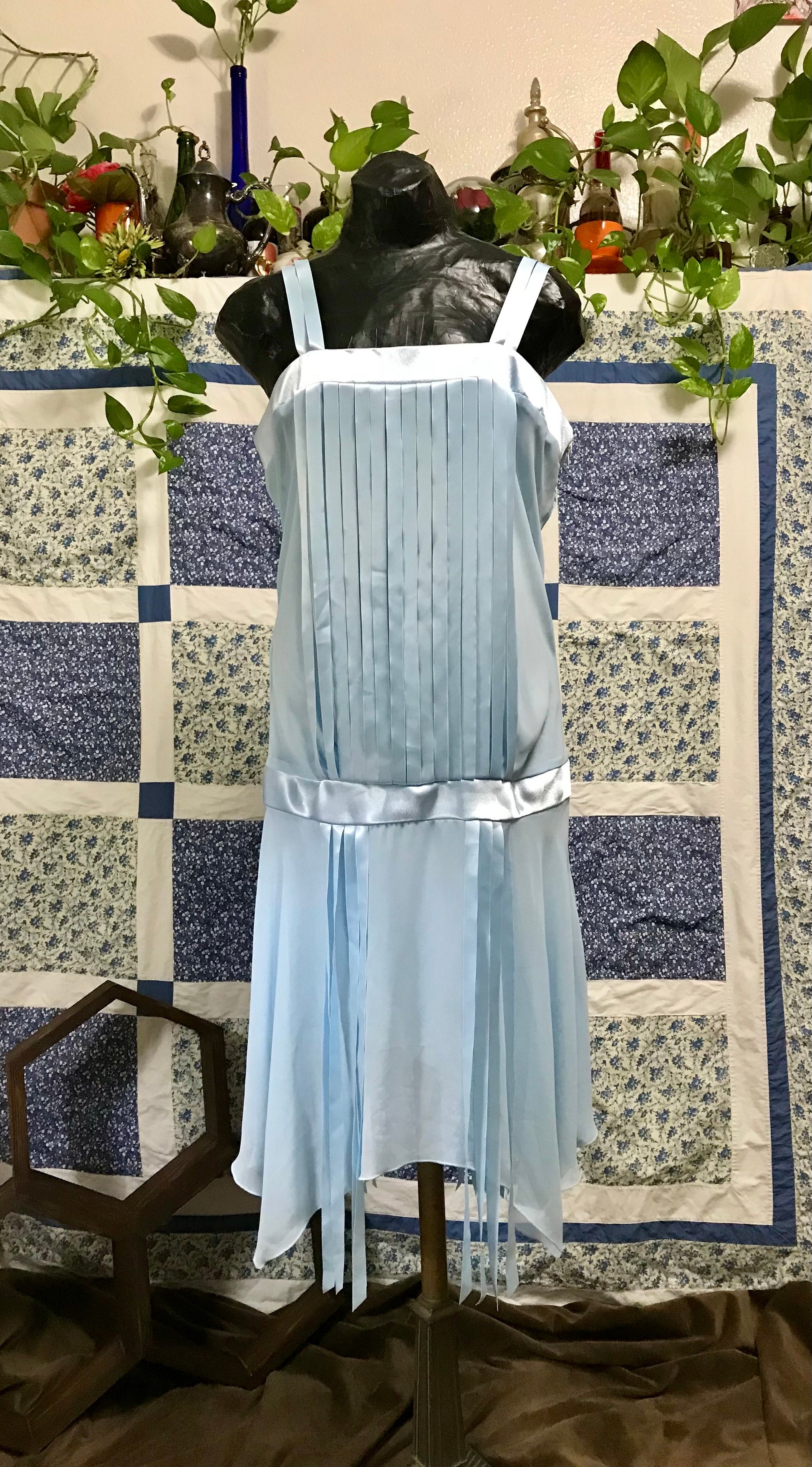 Dress is is overall great condition. There are two small runs in the drop waist on left side at side seam line. Unnoticeable without detailed inspection.