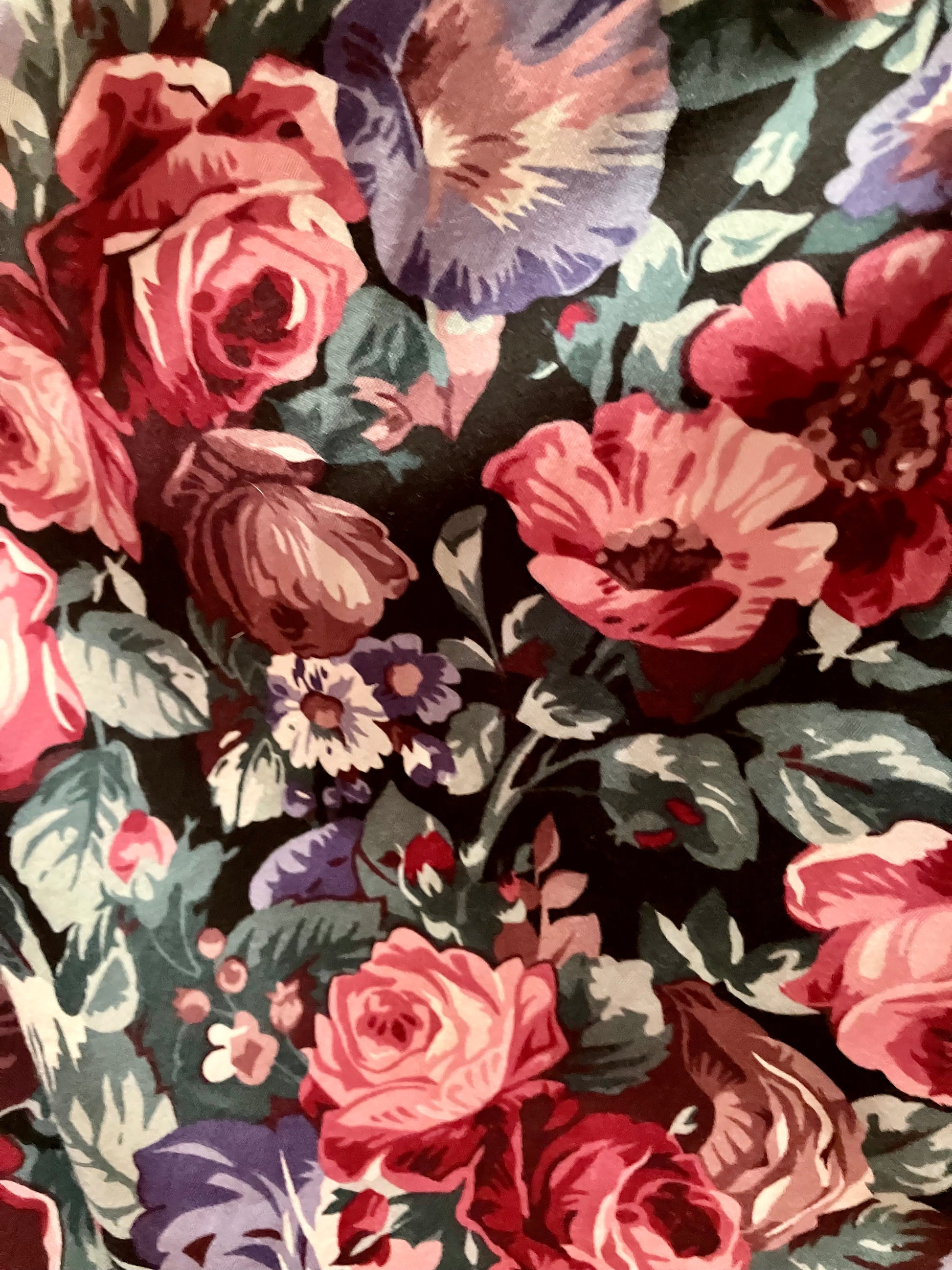 Another darling and dainty 80's Laura Ashley midi has come our way. This vibrant pink and purple floral is in incredible condition! This cutie is adorned with a simple sweetheart neckline along with a side gather waist accent.